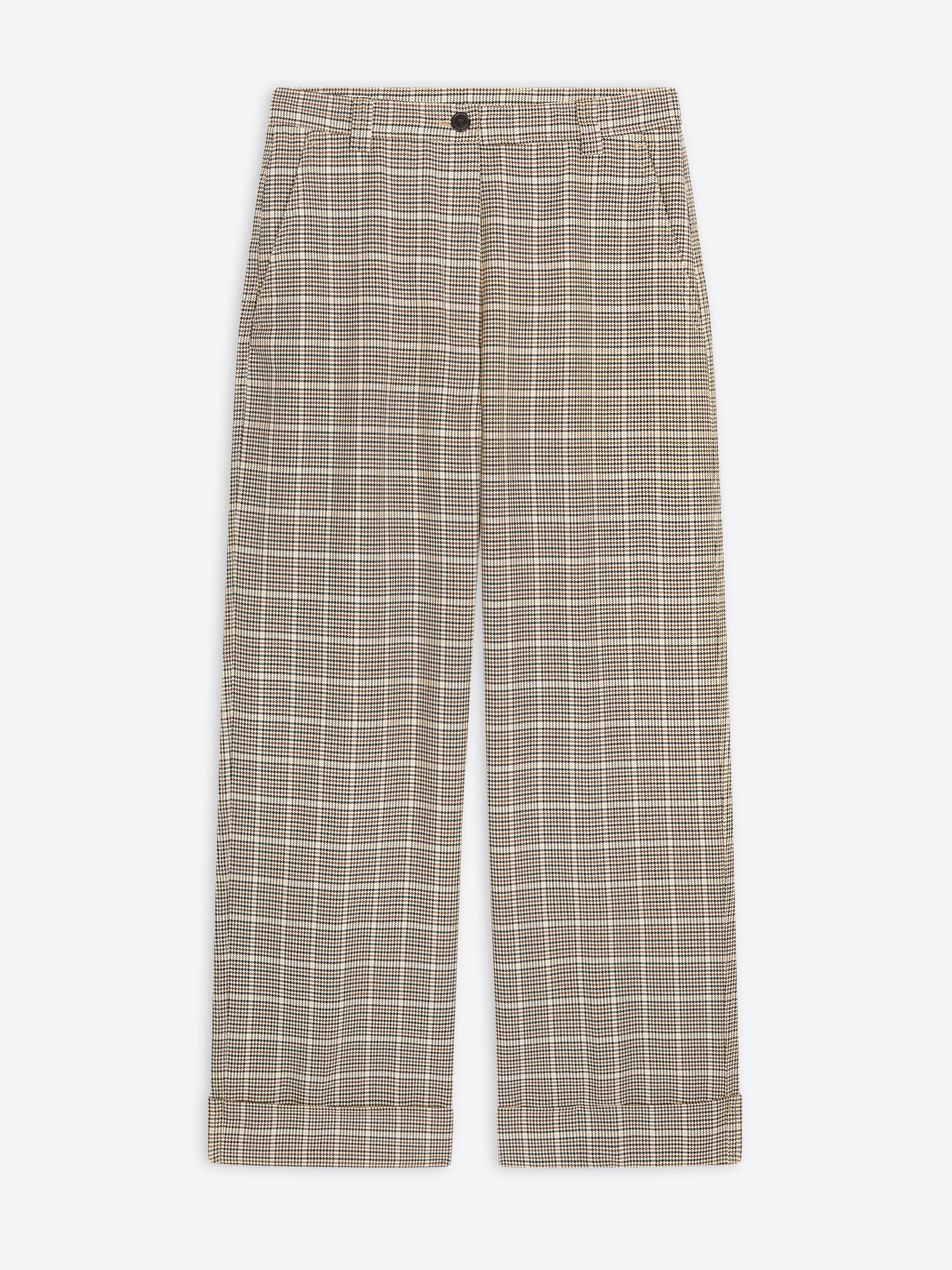 Straight-leg cuffed pants in cotton, with Prince of Wales check. DETAILS - 100% Cotton. - Prince of Wales check. - Regular fit. Mid rise. Straight leg. Back welt pockets. Front button and zip closure. - Ref: 242-010909-9352 SIZE AND FIT Model is 180 cm / 71 inches and wears size 38.