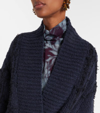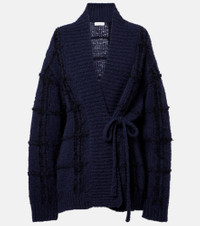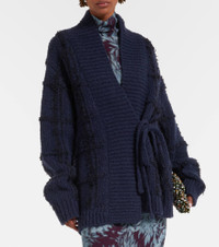 This checked wool cardigan from Dries Van Noten offers warmth for mid-season weather, also serving as an enveloping wrap. The shawl neck design features a checked pattern with textured tufts of contrasting yarn. Product Details - Material: 98% wool, 2% polyamide - Care instructions: dry clean - Made in Belgium - Designer color name: Navy - Item color: blue, black - Closure: self-ties - Cuff: ribbed - Hem: ribbed - Item number: P01106644 Size & Fit - True to size - Dropped shoulders - Loose fit, comes with belt - Slightly stretchy fabric - Falls below the hip - The model seen in the picture is 178cm-5'10" and wearing a size XS
