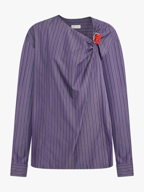 CIJOU STRIPE ASYMMETRICAL KNOT DETAIL L/S BLOUSE | PURPLE STEEL