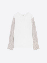Oversized t-shirt with contrast sleeves in cotton poplin. DETAILS - 80% Heavyweight Cotton, 20% Cupro. - Oversized fit. Contrast balloon sleeves. Buttoned cuffs. - Ref: 251-011157-1603 SIZE AND FIT Model is 176 cm / 69 inches and wears size S.