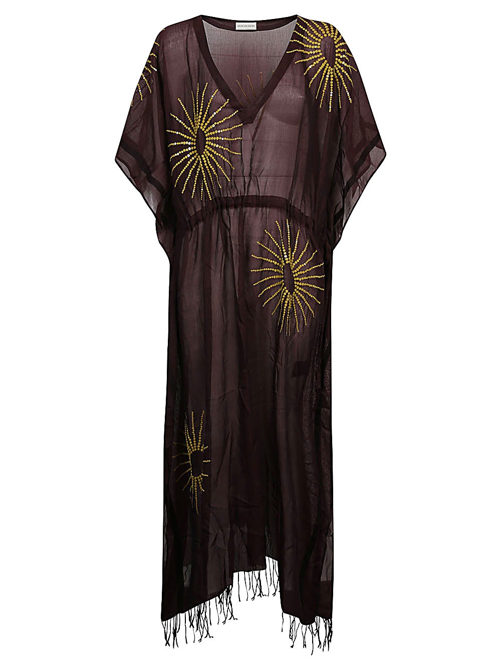 Long kaftan with embroidery, contrasting sequins and adjustable elastic waist. DETAILS Composition Cotton 70% Silk 30% Model ID COASTEMB-8353358