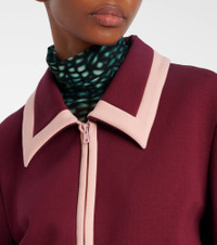 With its sharp tailoring and monochromatic geometries, this jacket from Dries Van Noten nods to the 60s Mod Fashion. Crafted from cotton-blend neoprene, it boasts a boxy cut, contrasting borders, and a cropped silhouette. Product Details - Material: 82% cotton, 12% polyester, 6% elastane - Care instructions: machine wash at 30 degrees - Made in Portugal - Designer color name: Bordeaux - Item color: red, pink - Closure: two-way zipped front - Pockets: side slit pockets - Item number: P01030512 Size & Fit - True to size - Designed for a loose fit - Slightly stretchy fabric - Slightly cropped - The model seen in the picture is 178cm-5'10" and wearing a size XS
