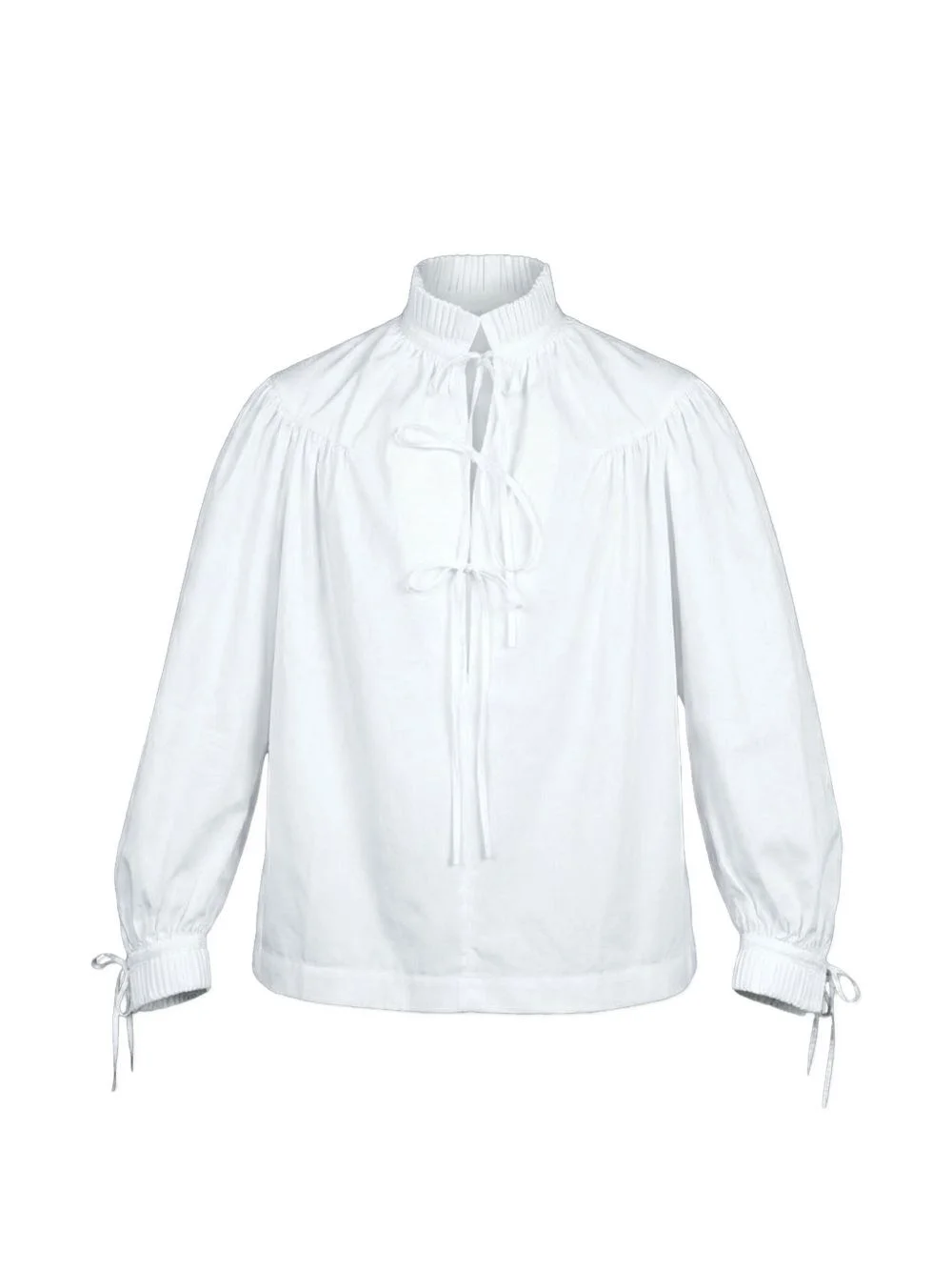 Cotton poplin shirt with crinkled details and ruffles. Self-tie lacing on neckline and cuffs. product code: 2611307163314001 COMPOSITION 100% cotton MADE IN TUNISIA