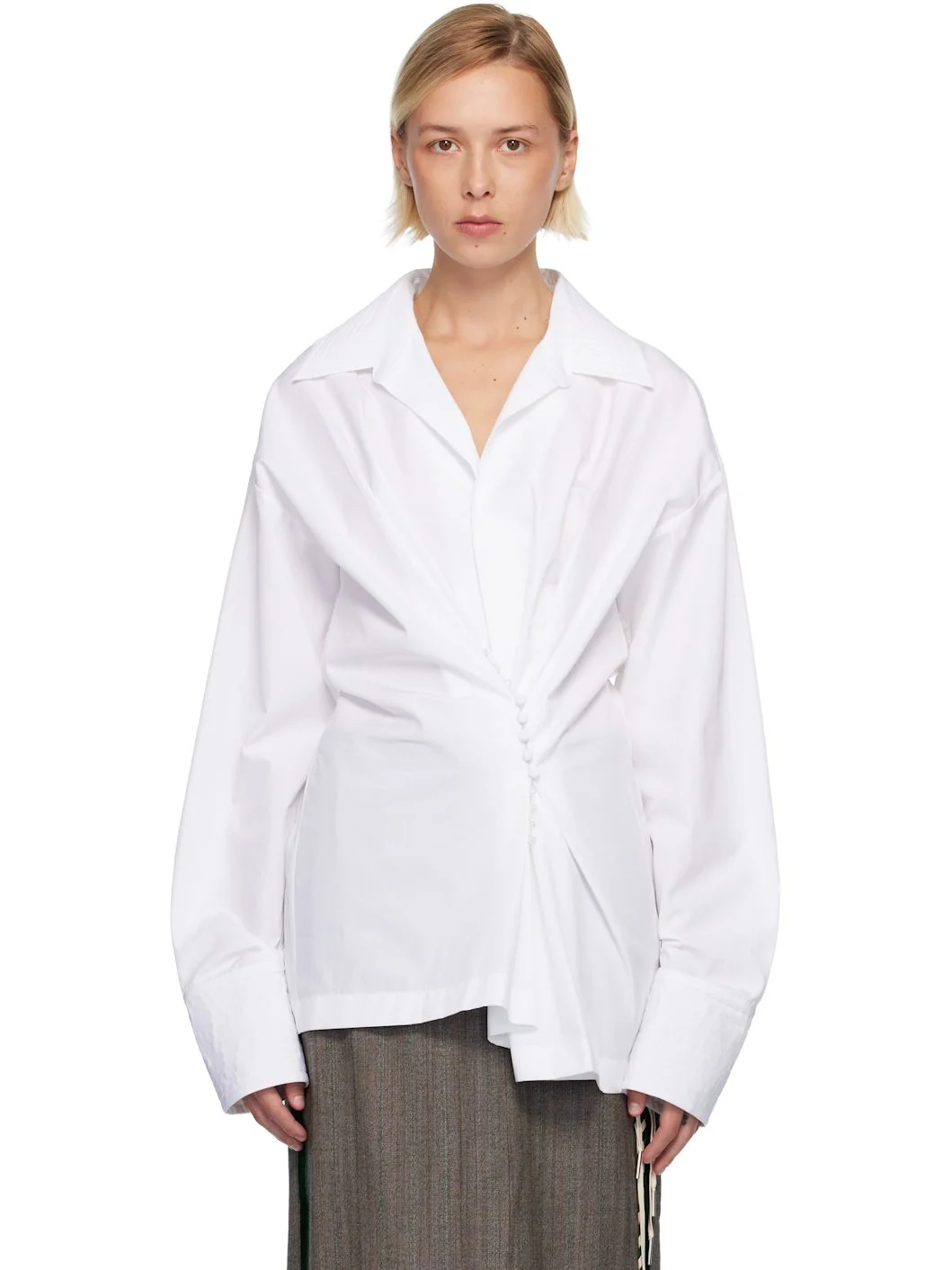 Cotton poplin shirt. · Quilted open spread collar and cuffs · Plunging V-neck · Button closure at front · Buttoned surgeon's cuffs · Darts at back Supplier color: White 100% cotton. Made in Poland 252358F109021