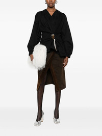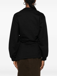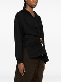 Cotton jersey top with an asymmetrical draped line. Jewel brooch detail. Side slits. V-neck and ribbed cuffs. product code: 2520111342611900 COMPOSITION 100% cotton MADE IN TURKEY