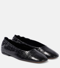 Croc-effect leather ballet flats