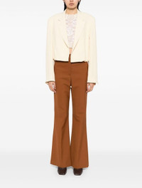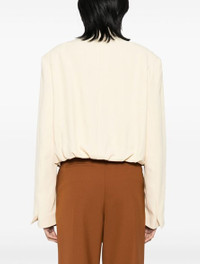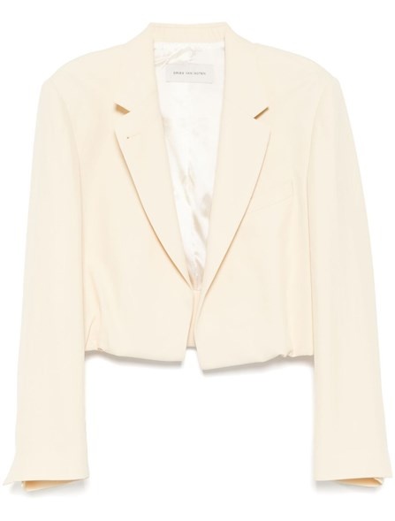 Cream cropped jacket with pleated puff effect. Detail with buttonhole and button on the lapels. Welt pocket on the chest. Cuffs with split. Lined. product code: 2510105081503100 COMPOSITION 100% acetate MADE IN MOROCCO