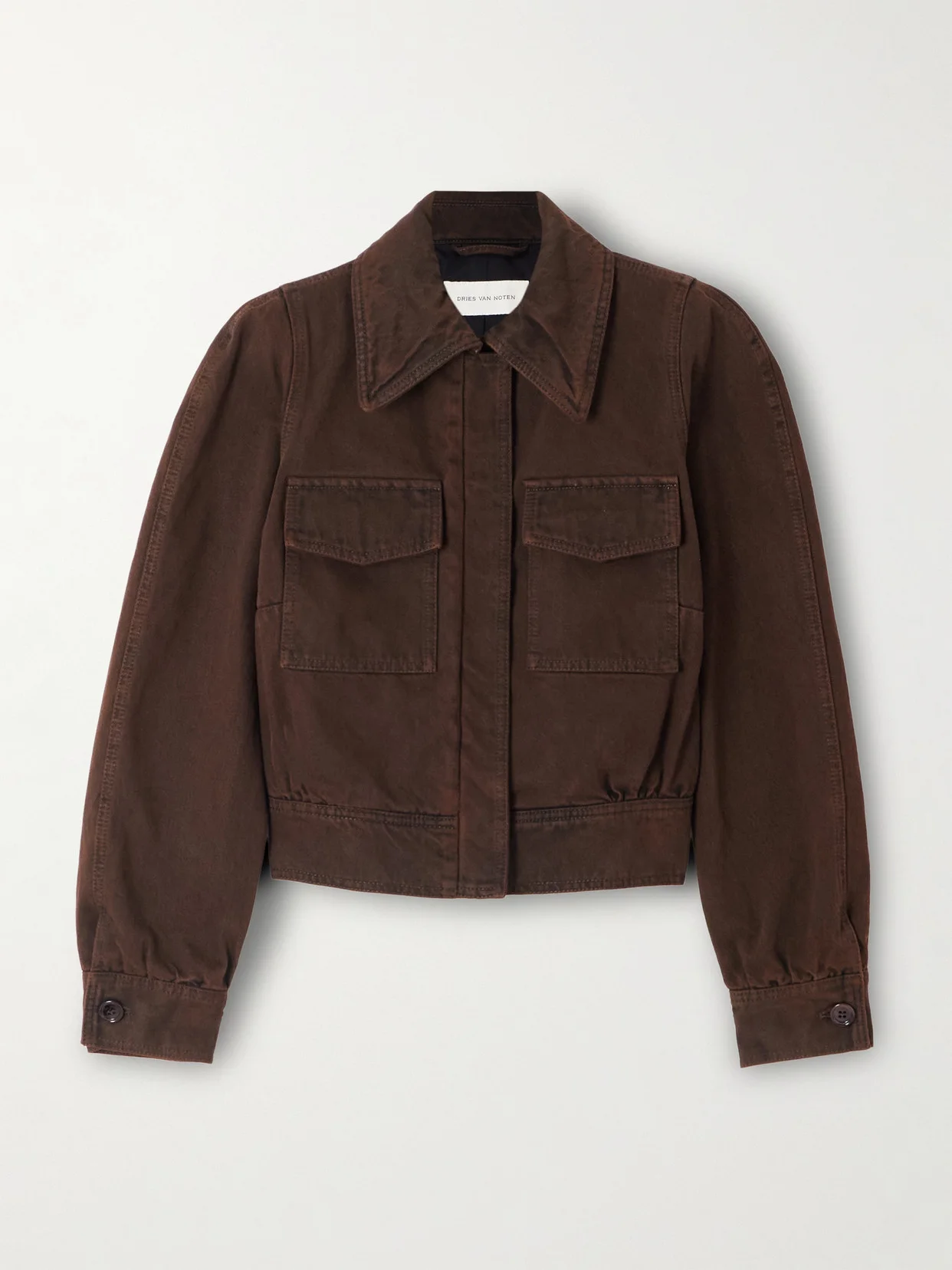 Dries Van Noten's jacket is made from brown denim that's lightly faded along the seams for a lived-in look. It's cut for a slightly loose fit and has a cropped hem.