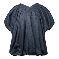 600071663DNM0XS / CRUNCH BIS DEN/2382/507 - Integrated scarf detail at neckline - Balloon-shaped silhouette with gathered volume - Short puff sleeves - Textured woven fabric construction - Relaxed oversized fit - Curved hemline with subtle draping The Dries Van Noten Balloon Top With Scarf delivers avant-garde femininity with sculptural volume and artistic draping. Crafted from lightweight textured fabric in sophisticated charcoal blue, featuring an innovative balloon silhouette with integrated scarf detail. The oversized proportions and signature Van Noten aesthetic create a statement piece that embodies contemporary Belgian design.