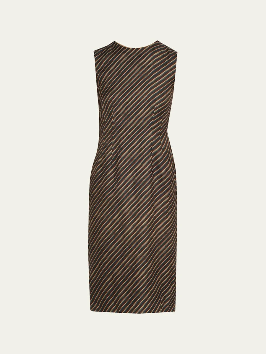 Delavina Diagonal Striped Sleeveless Sheath Dress