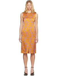 Viscose-blend brocade midi dress. Jacquard floral pattern throughout. · Round neck · Vent at front hem · Zip closure at back · Full cotton- and cupro-blend twill lining Supplier color: Mandarin Body: 62% viscose, 38% acetate. Lining: 55% cotton, 45% cupro. Made in Poland 251358F054016