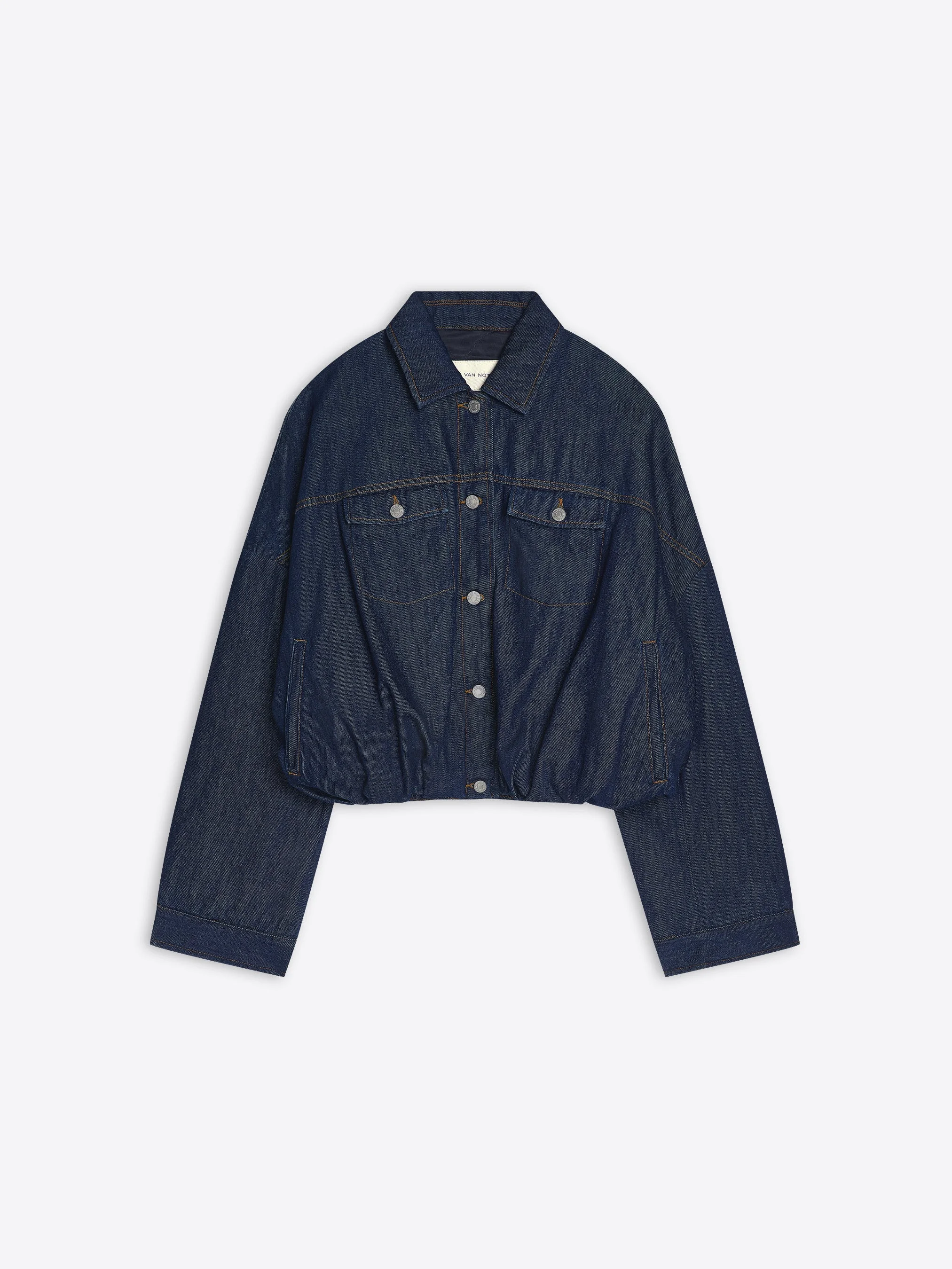 Cocoon shaped blouson in denim. DETAILS - 100% Cotton. - Regular fit. Cocoon shape. Front patch pockets and side slit pockets. Front button closure. - Ref: 252-010515-2381 SIZE AND FIT Model is 177 cm / 70 inches and wears size M.