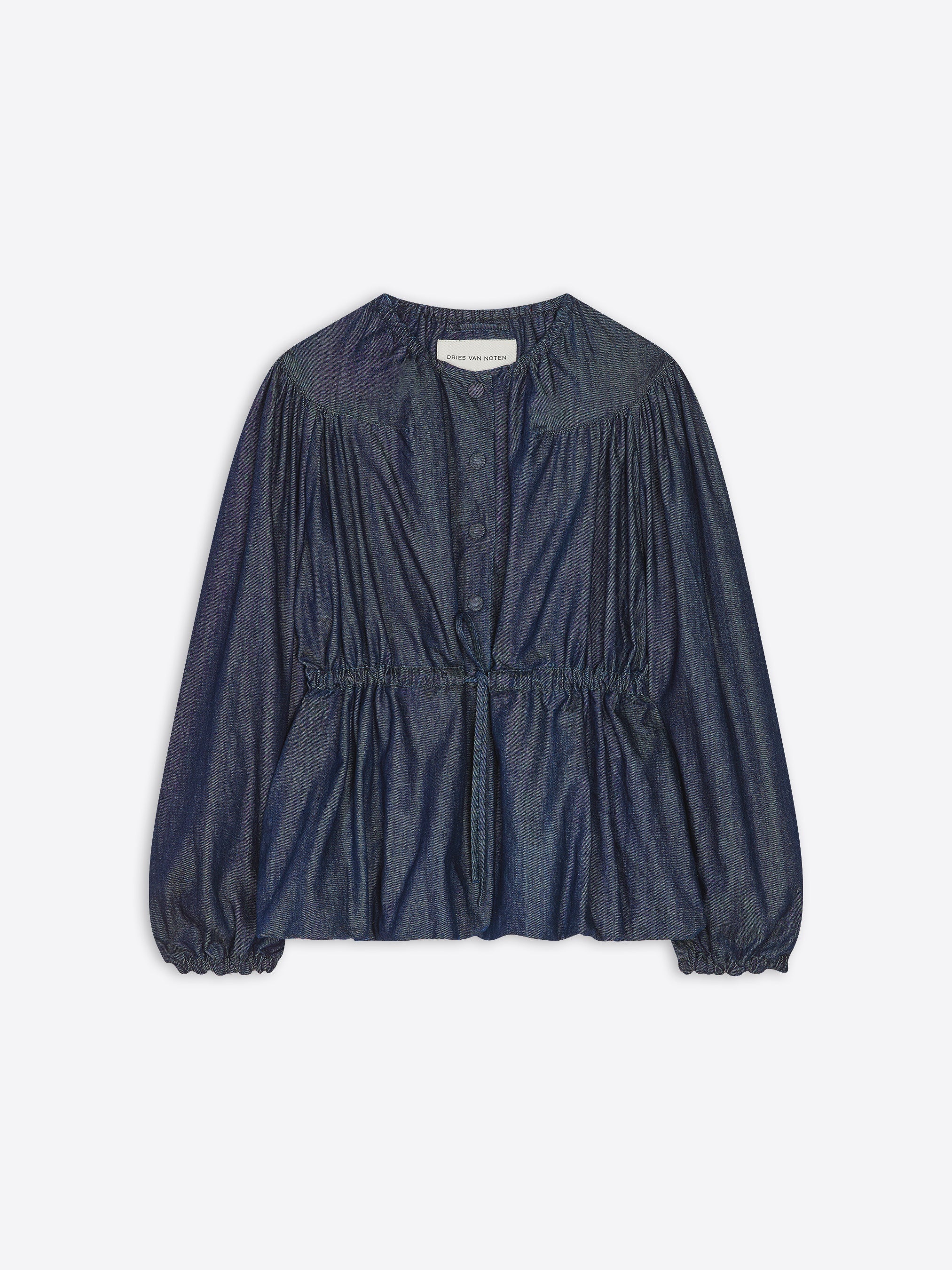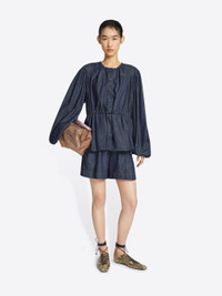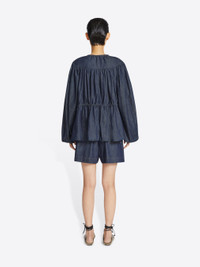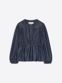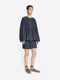 Loose fit short jacket with drawstring at the waist, in lightweight rinsed indigo denim. DETAILS - 100% Cotton. - Overdyed denim. - Loose fit. Unconstructed. Drawstring waistband and hem. Front fabric-covered button closure. - Ref: 251-010511-1553 SIZE AND FIT Model is 177 cm / 70 inches and wears size M.