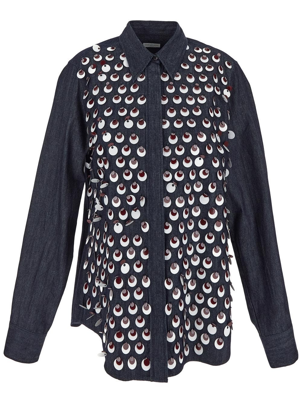 Dries Van Noten shirt in denim with all over frontal paillettes details and loose fit MORE INFORMATION Gender: Woman Color: blue Patterns: none Manufacturer Code: 0107558431507 Descriptive Color: denim Cleaning: professional clean Fit: true to size Composition: 100%Cotton Made In: India Brand: Dries Van Noten Season Code: SS24 Size Label: FR