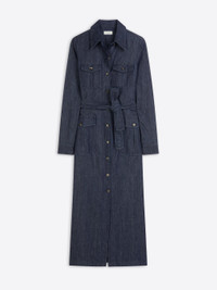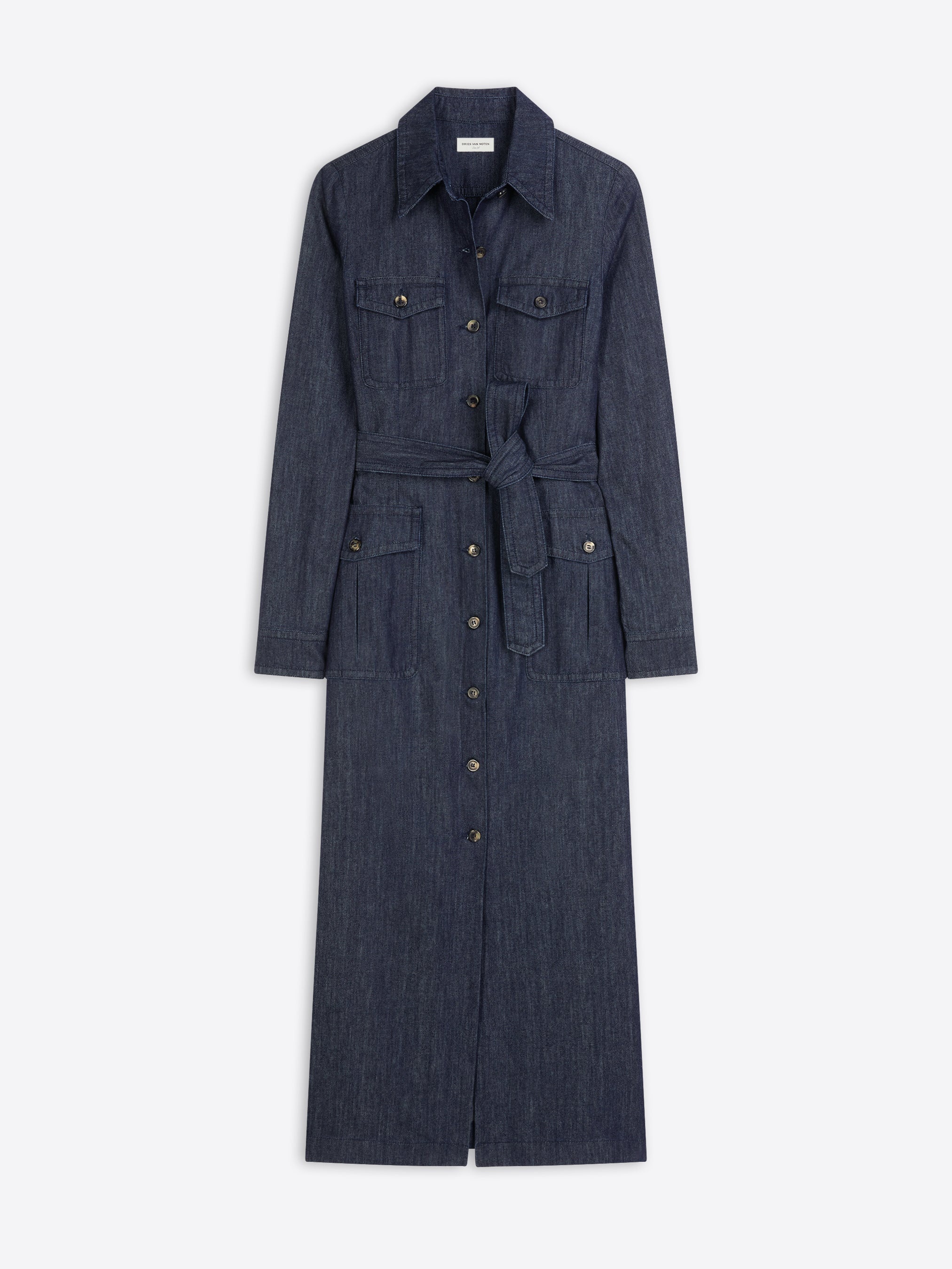 Fitted shirt dress in denim, with patch pockets and belt. DETAILS - 100% Light Cotton. - Tight fit. Midi length. Front and chest patch pockets. Buttoned cuffs. Belted. Front button closure. - Ref: 241-011009-8431 SIZE AND FIT Model is 178 cm / 70 inches and wears size 36.