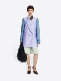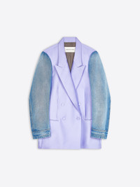 Oversized double-breasted blazer with contrast sleeves in double-weave polyester-silk scuba. DETAILS - 60% Polyester, 20% Silk, 20% Cotton. Lining: 100% Viscose. Inside pocket lining: 100% Cotton. - Oversized fit. Lined. Double-breasted. - Ref: 242-010407-9169 SIZE AND FIT Model is 179 cm / 70.5 inches and wears size M.