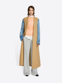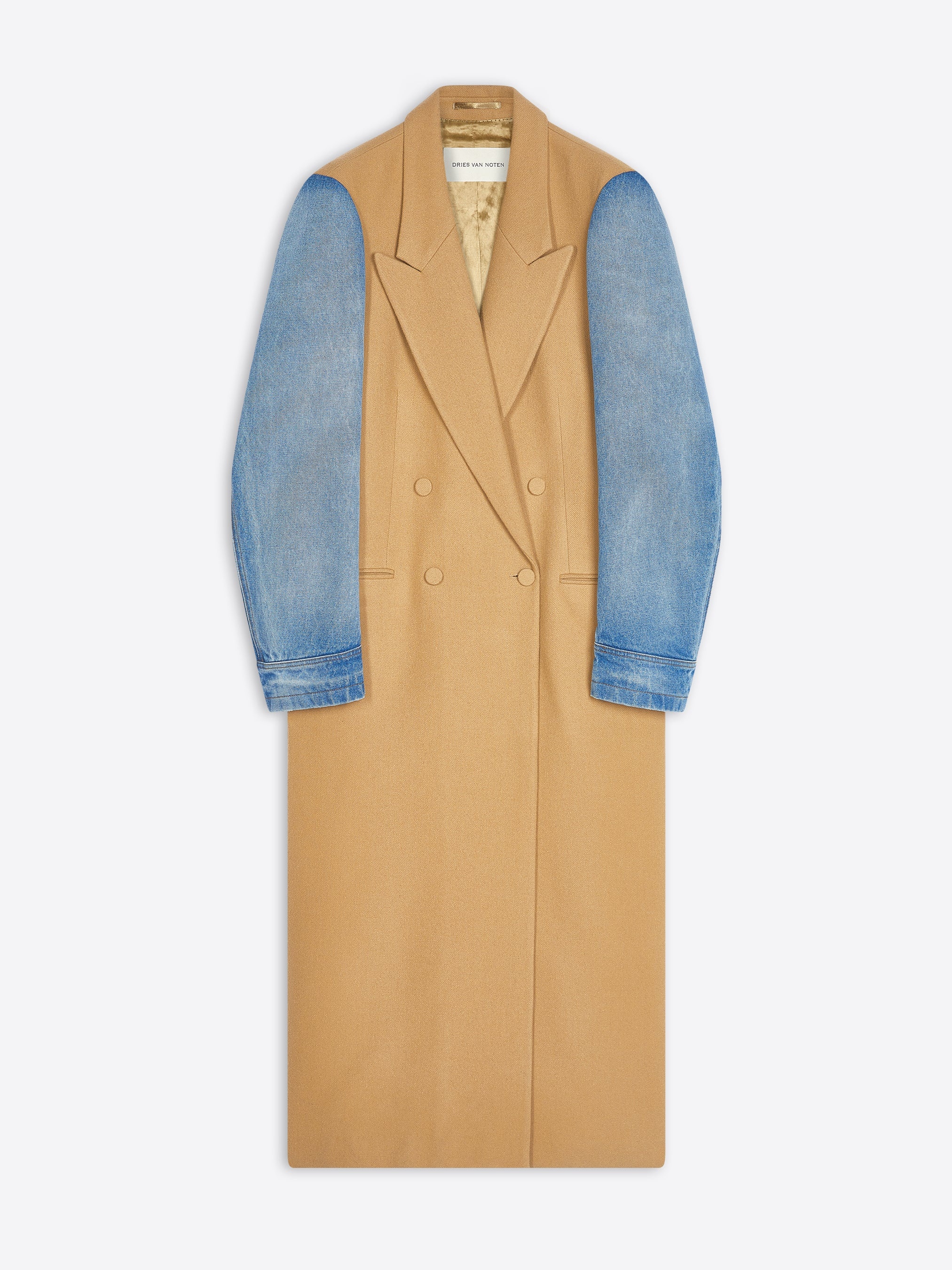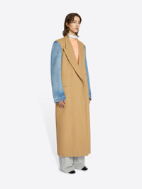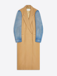 Oversized double-breasted coat in brushed wool gabardine, with contrast denim sleeves. DETAILS - 67% Wool, 26% Cotton, 7% Nylon. Lining: 64% Viscose, 36% Cotton. - Contrast denim sleeves. - Oversized fit. Lined. Double-breasted. Front jetted pockets. Front button closure. - Ref: 242-010217-9236 SIZE AND FIT Model is 178 cm / 70 inches and wears size M.