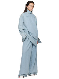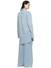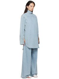 Non-stretch denim shirt. · Can be worn front to back · Spread collar · Four-button placket · Shirttail hem · Dropped shoulders · Two-button barrel cuffs · Contrast stitching in tan Supplier color: Ice blue