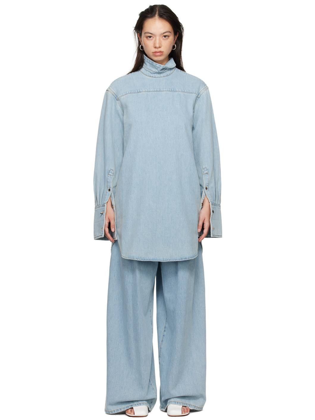 Blue Half-Button Denim Shirt