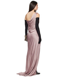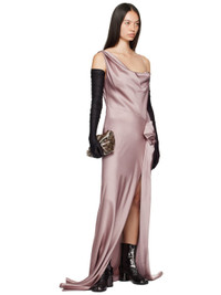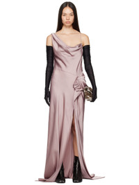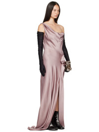 Acetate- and viscose-blend satin dress. Draping throughout. · Gathering at asymmetric cowl neck · Ruffled trim at waist · Vent at outseam · Fixed spaghetti strap · Partial satin lining Supplier color: L pink