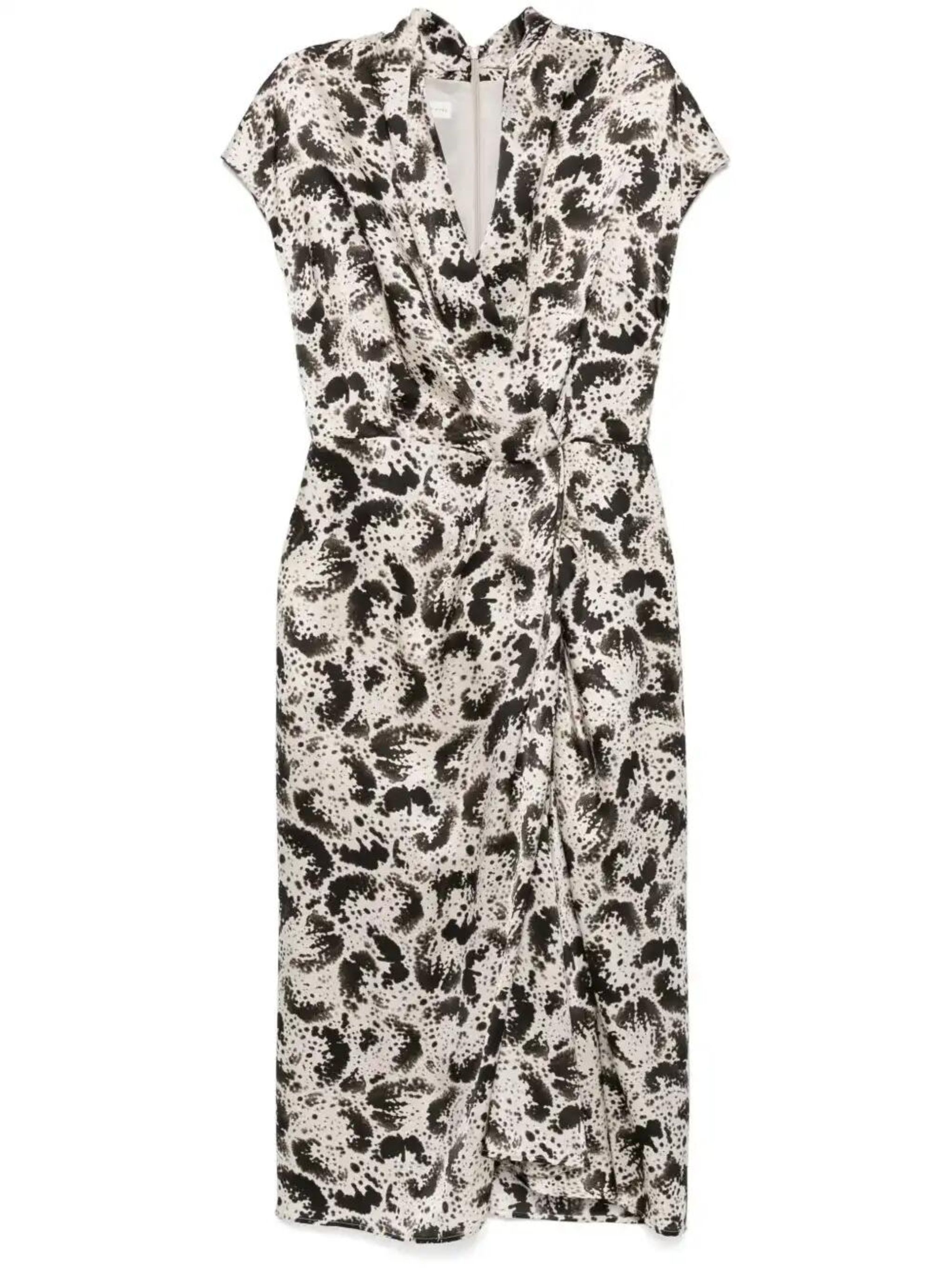 black concealed rear zip fastening V-neck short sleeves ruched detailing Size & Fit Model Measurements: Height: 1.75 m Bust/Chest: 81.0 cm Hips: 88.0 cm Waist: 61.0 cm Model wears size 38 Fabric and Care Designer Style ID: 2510110221163 Designer Colour: 900 BLACK Composition: Outer: Silk 100%; Lining: Silk 100% Washing instructions: Dry Clean Only Made in Poland