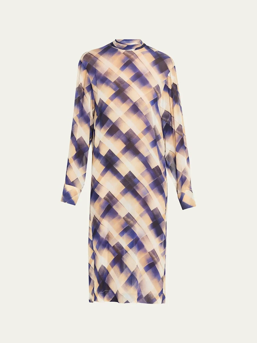 Doddy Scarf-Neck Check-Print Midi Dress