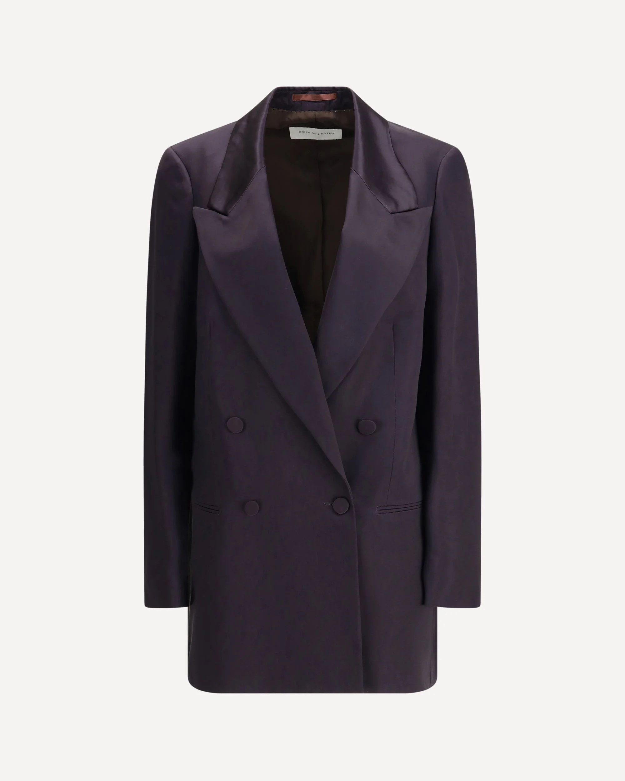 The Double-Breasted Blink Blazer by Dries Van Noten offers a relaxed yet refined approach to tailoring. Crafted with a straight silhouette, it features a lapel collar, welt pockets, and fabric-covered buttons that add a subtle touch of sophistication. Fully lined, it balances ease and structure for versatile styling. DETAILS - Sku: 2520104092071_402 - Season: AW25 - Fit: Oversize - Composition: GENERAL 100% Wool - MADE IN MOROCCO