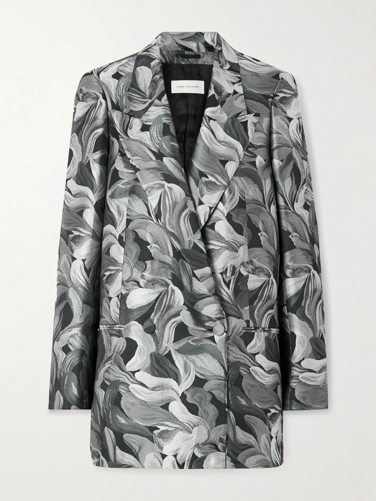 Dries Van Noten's collections are celebrated for their rich textures and expressive prints. This oversized blazer is tailored from jacquard woven with abstract florals and features a double-breasted front framed by wide peak lapels.