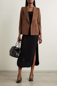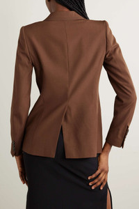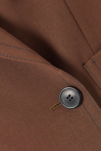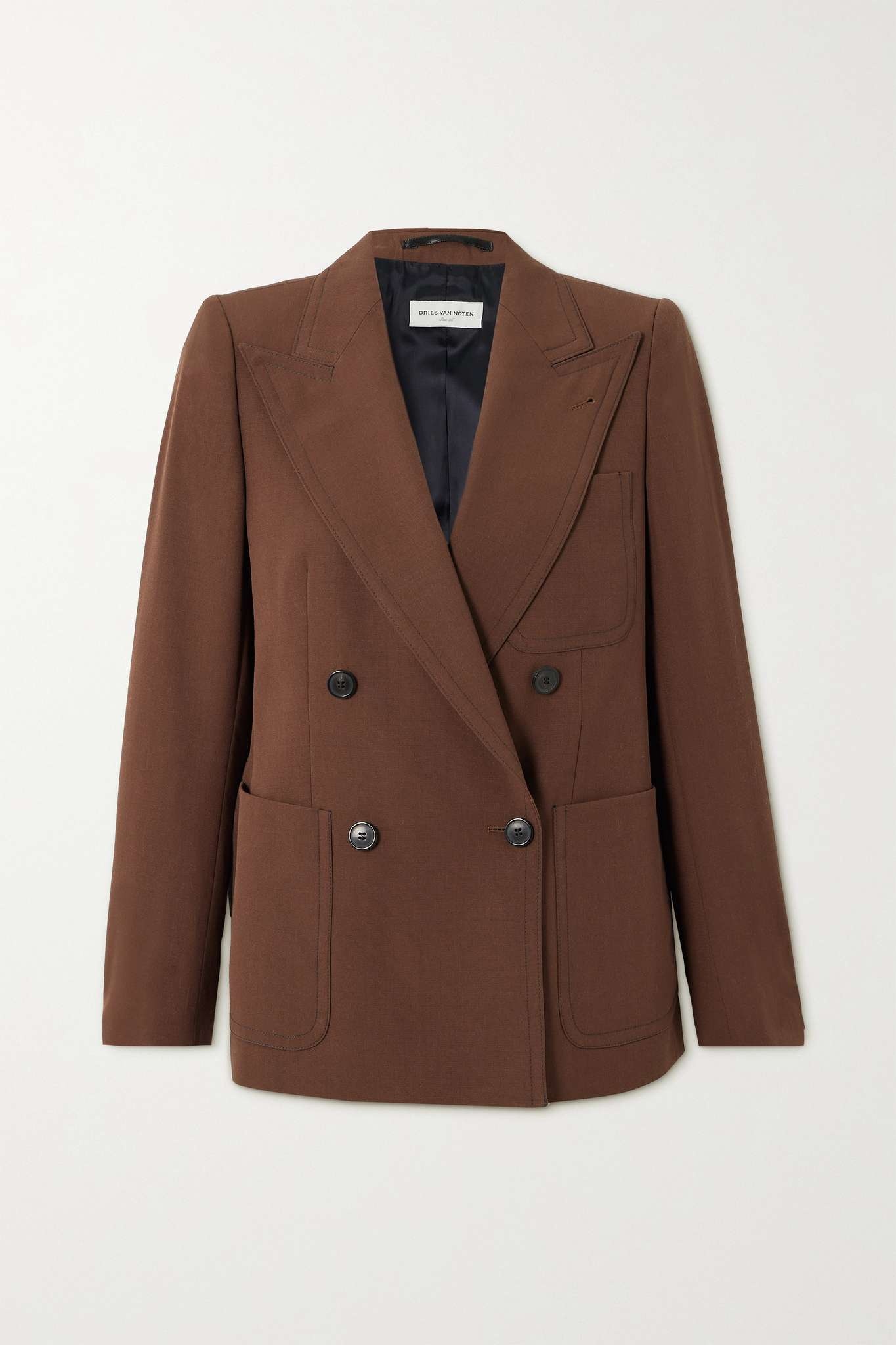 EDITORS'NOTES Contrasting topstitching at the seams and buttonholes imbues this blazer with the subtle irreverence and freshness that we love from Dries Van Noten. It's tailored from brown wool with generously proportioned pockets and peak lapels. SIZE & FIT - Fits true to size, take your normal size - Designed to be slightly fitted at the bust and waist, loose at the hip - Short in the sleeves - Internal shoulder pads - Mid-weight, non-stretchy fabric - Model is 180cm/ 5’11”and is wearing a FR 36 DETAILS & CARE - Brown wool - Button fastenings through double-breasted front - 100% wool; buttons: 100% horn (Buffalo) - Dry clean - Designer color: Rust