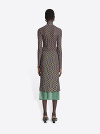 Fitted double layered skirt in elasticated nylon mesh, with Mini Tie motif. DETAILS - 94% Nylon, 6% Elastane. - Mini Tie motif. Semi-transparent. - Tight fit. Midi length. Double layer with gathering. - Ref: 252-011123-2623 SIZE AND FIT Model is 178 cm / 70 inches and wears size S.