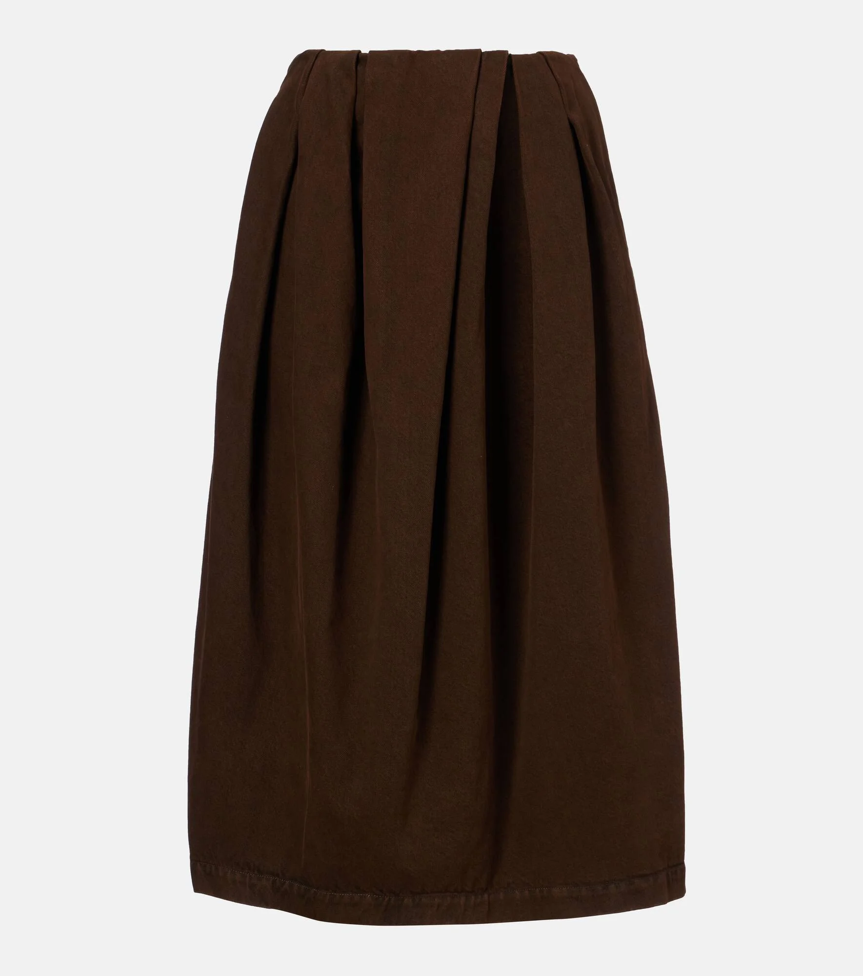 This Dries Van Noten midi skirt is crafted in Italy from denim and creates relaxed yet sophisticated looks. The high-rise silhouette is finished with subtle draping and a gentle flared shape. Product Details - Material: 100% cotton - Care instructions: machine wash at 30 degrees - Made in Italy - Designer color name: Brown - Item color: brown - Closure: concealed zipped back - Pockets: side slit pockets - Item number: P01092182 Size & Fit - True to size - Non-stretchy fabric - The model seen in the picture is 178cm-5'10" and wearing a size FR 36