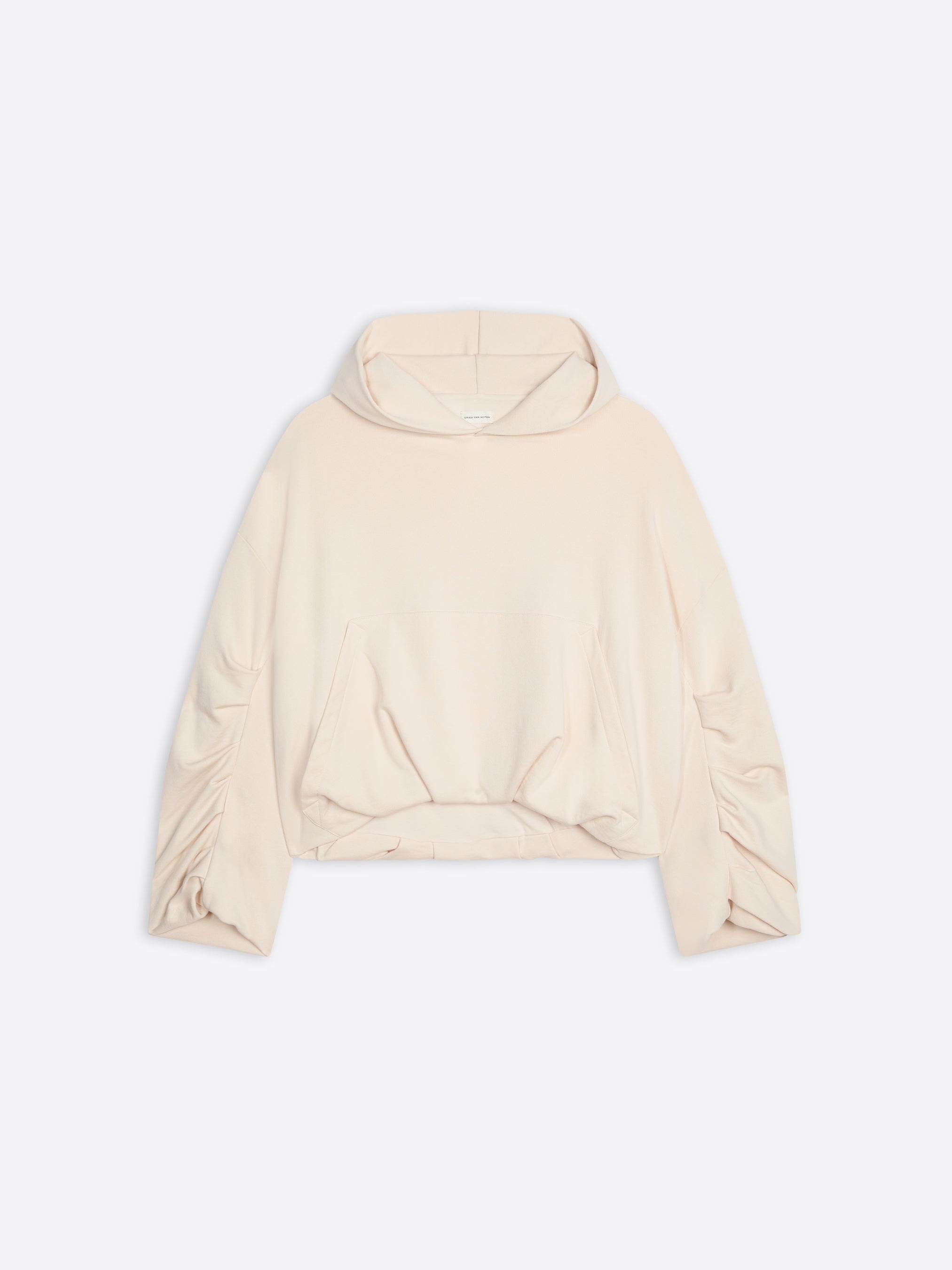 Oversized tailored hoodie with draping and pleated sleeves, in cotton. DETAILS - 100% Cotton. - Oversized fit. Tailored cut. Pleated gathered sleeves. Hooded. - Ref: 251-011106-1610 SIZE AND FIT Model is 178 cm / 70 inches and wears size M.