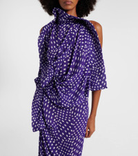 Dries Van Noten showcases his tailoring expertise with this midi dress. An elegant one-shoulder silhouette with fluid draping, the purple design features a polka-dot motif all over and a knotted detail at the waist for added volume. Product Details - Material: 100% viscose - Care instructions: dry clean - Made in Poland - Designer color name: Purple - Item color: purple, white - Closure: concealed zipped side - Item number: P01093144 Size & Fit - True to size - Low back - Semi-sheer - Cinched waist - Non-stretchy fabric - The model seen in the picture is 178cm-5'10" and wearing a size FR 36