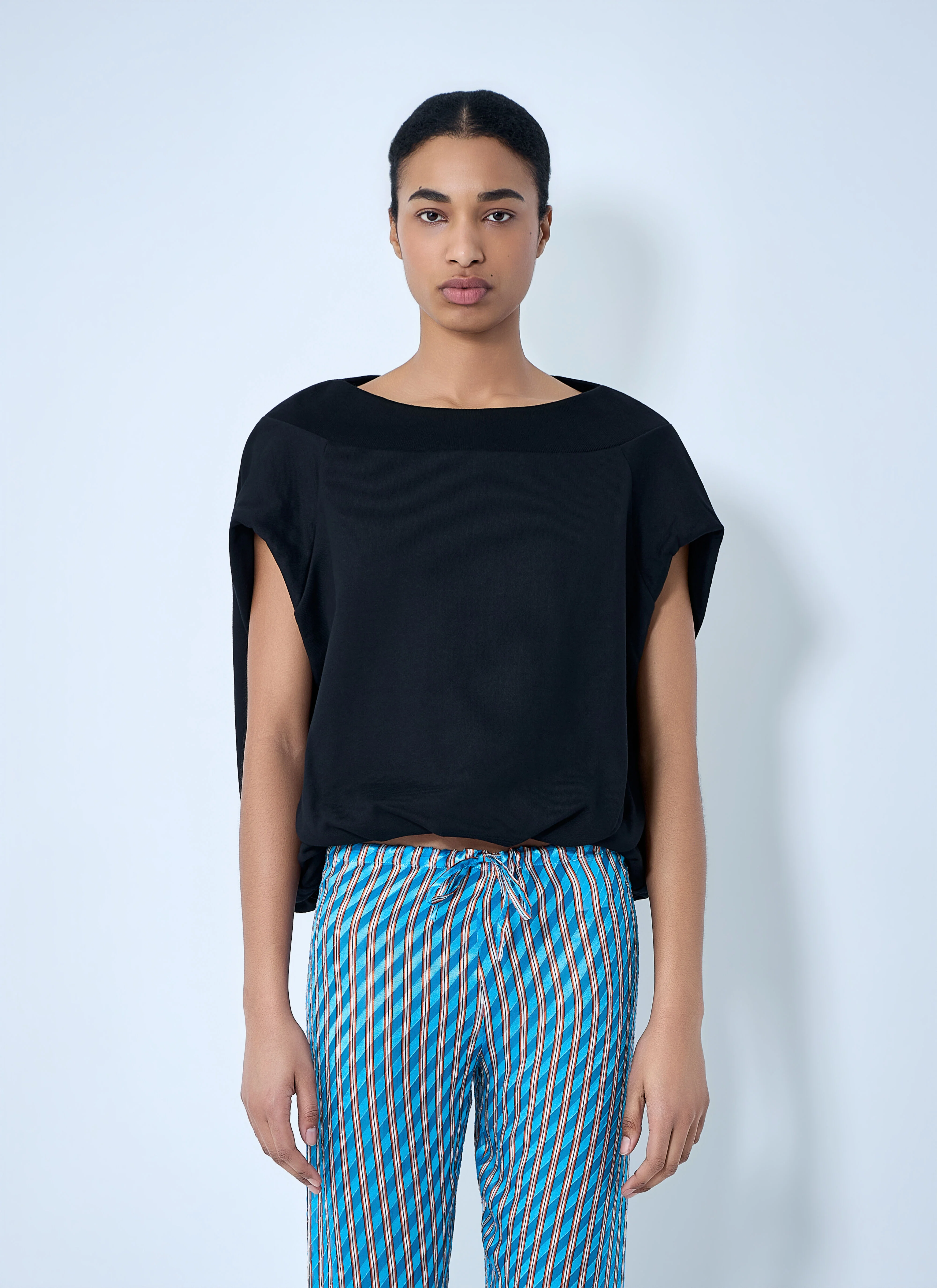 Top with wide neckline and draped sleeves. - Wide neckline - Draped sleeves - Relaxed fit - 100% Cotton - Color: Black - Code: 261-131110-3611 900