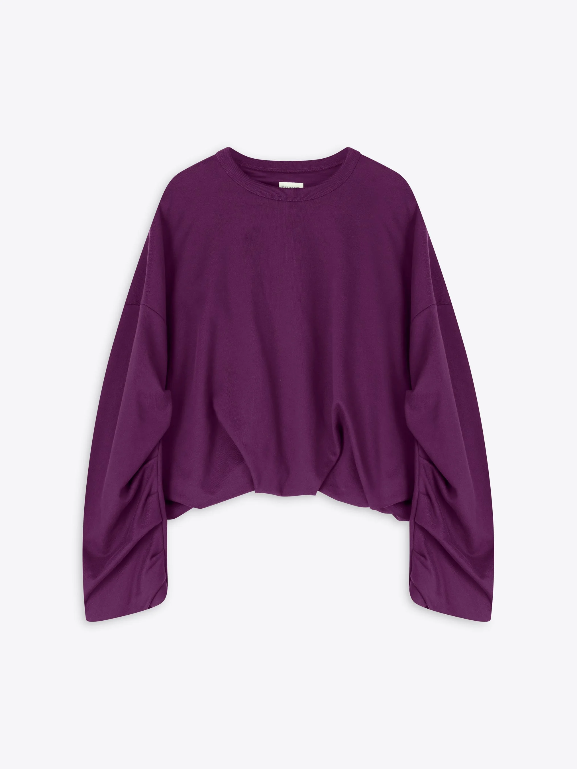 Oversized tailored sweater with draping, in heavyweight cotton. DETAILS - 100% Heavyweight Cotton. - Oversized fit. Tailored cut. Pleated gathered sleeves. Round collar. - Ref: 261-131109-3611 SIZE AND FIT Model is 178 cm / 70 inches and wears size M.