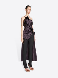 Regular fit top in draped viscose satin, with open back and side sash. DETAILS - 100% Viscose. - Side sash. - Regular fit. Sleeveless. Backless. Fabric-covered button closure. - Ref: 252-010782-2071 SIZE AND FIT Model is 178 cm / 70 inches and wears size 34.