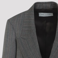 Dries Van Noten Grey Melange Wool Blink Jacket. Pure grey melange wool jacket, notched collar, front buttoned fastening, double-breasted design, side slit pockets, long sleeves, buttoned cuffs, straight hem, fully contrasting black lining. Gender: Women Material: 100%WOOL Color: GREY Made in: Imported Product ID: 2520104092250_813 *Import tax/duty will be calculated at checkout (If applicable)