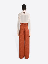 Regular fit straight leg slouchy pants in abstract swirl embossed jacquard. DETAILS - 70% Polyester, 30% Polyurethane Fiber. - Abstract swirl embossed jacquard. - Regular fit. Straight leg. Side slit and back welt pockets. Front zip and hook closure. - Ref: 252-010900-2162 SIZE AND FIT Model is 178 cm / 70 inches and wears size 36.