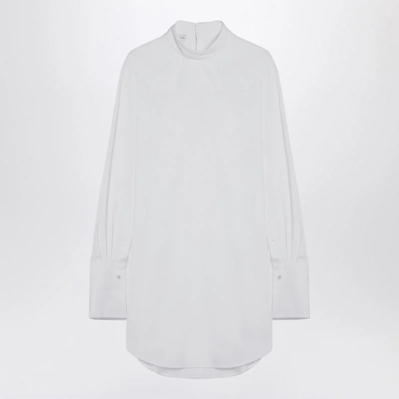 Oversized shirt by Dries Van Noten in white cotton poplin featuring a high collar design, a back button fastening, long sleeves, button cuffs and a curved hem. Gender: Women Material: 100% Cotton Color: WHITE Made in: HU Product ID: 0107029293/P_DRVNO-001 *Import tax/duty will be calculated at checkout (If applicable)
