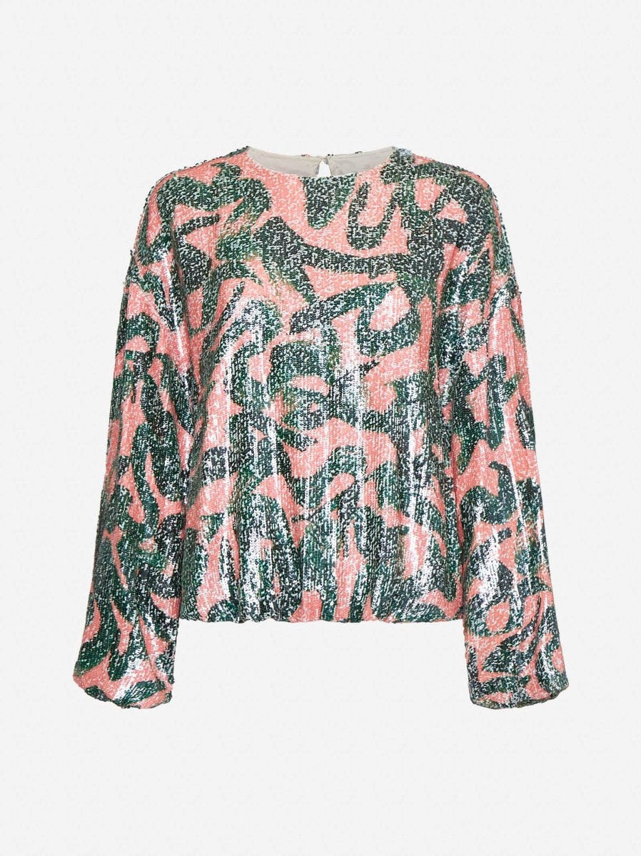 •Button closure at neck back, teardrop cut-out •Crewneck •Oversized draped long sleeves •Gathered waist •All-over printed sequin embroidery •Lined •Loose fit •Color: multicolor •100 % Acetate •Made in India Size and fit: La modella e alta 173 cm e indossa la taglia S Country of manifacture: India ID designer: 0107389315604