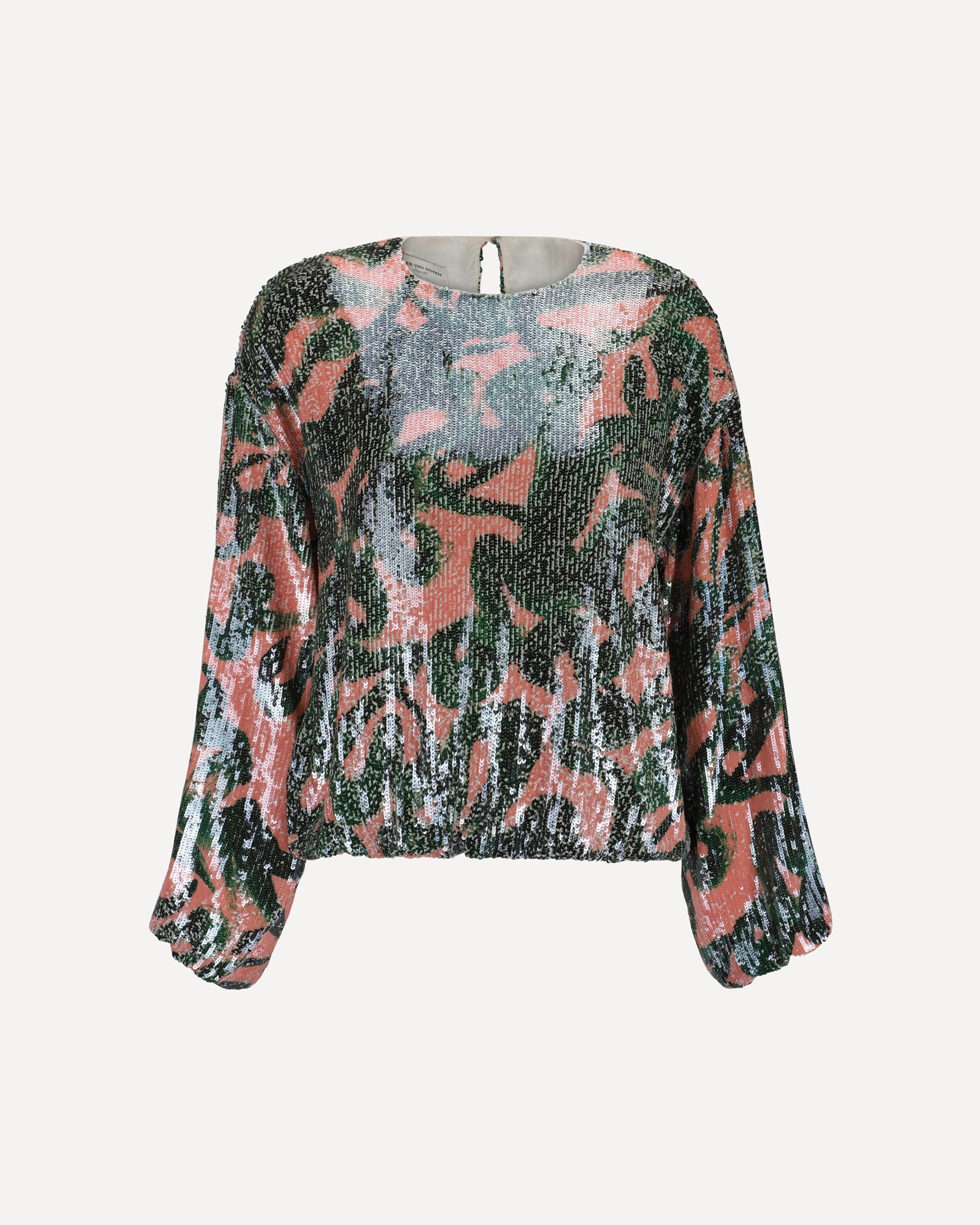Dries Van Noten's Top is a style statement with a bold and bright character. Crafted in a long-sleeved style with elasticized cuffs and hem, it features a regular fit that enhances the silhouette without constriction. Multi-colored all-over applied sequins give the garment a bright and sophisticated effect, perfect for striking looks. Ideal for those looking for an elegant and original top, signed by a unique creative vision. DETAILS - Sku: 2420107389315_604 - Season: AW24 - Fit: Regular - Composition: GENERAL 100% Viscose - MADE IN ROMANIA