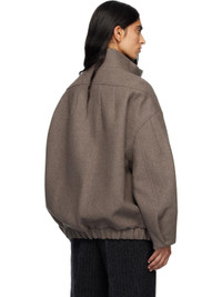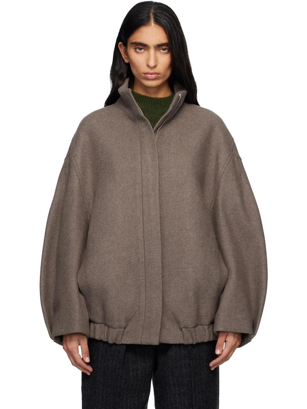 Wool-blend melton jacket. · Stand collar · Concealed zip closure · Seam pockets at waist · Elasticized hem · Dropped shoulders · Balloon sleeves · Pleats at cuffs · Full satin lining Supplier color: Taupe Body: 70% wool, 30% polyamide. Lining: 64% viscose, 36% cotton. Made in Bulgaria 252358F063005