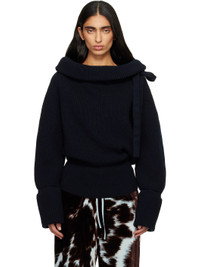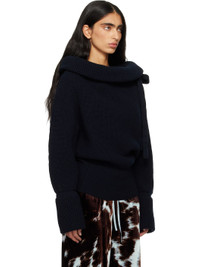 Rib-knit wool turtleneck. · Can be worn off-the-shoulder · Drawstring with self-tie fastening at collar · Raglan sleeves · Inverted box pleat at back collar Supplier color: Black 100% wool. Made in Belgium 252358F099011