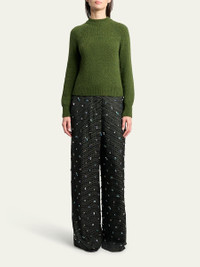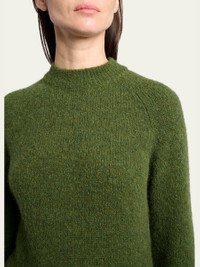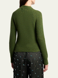 Dries Van Noten "Texas" sweater is crafted of a luxuriously soft alpaca-blend knit for cool-weather sophistication that pairs perfectly with tailored or relaxed separates Mock neckline Long raglan sleeves Relaxed fit Ribbed cuffs and hem Pullover style Alpaca/merino wool Made in Belgium Online Inquiries: BGS21_BAAMG| Store Inquiries: #5068596