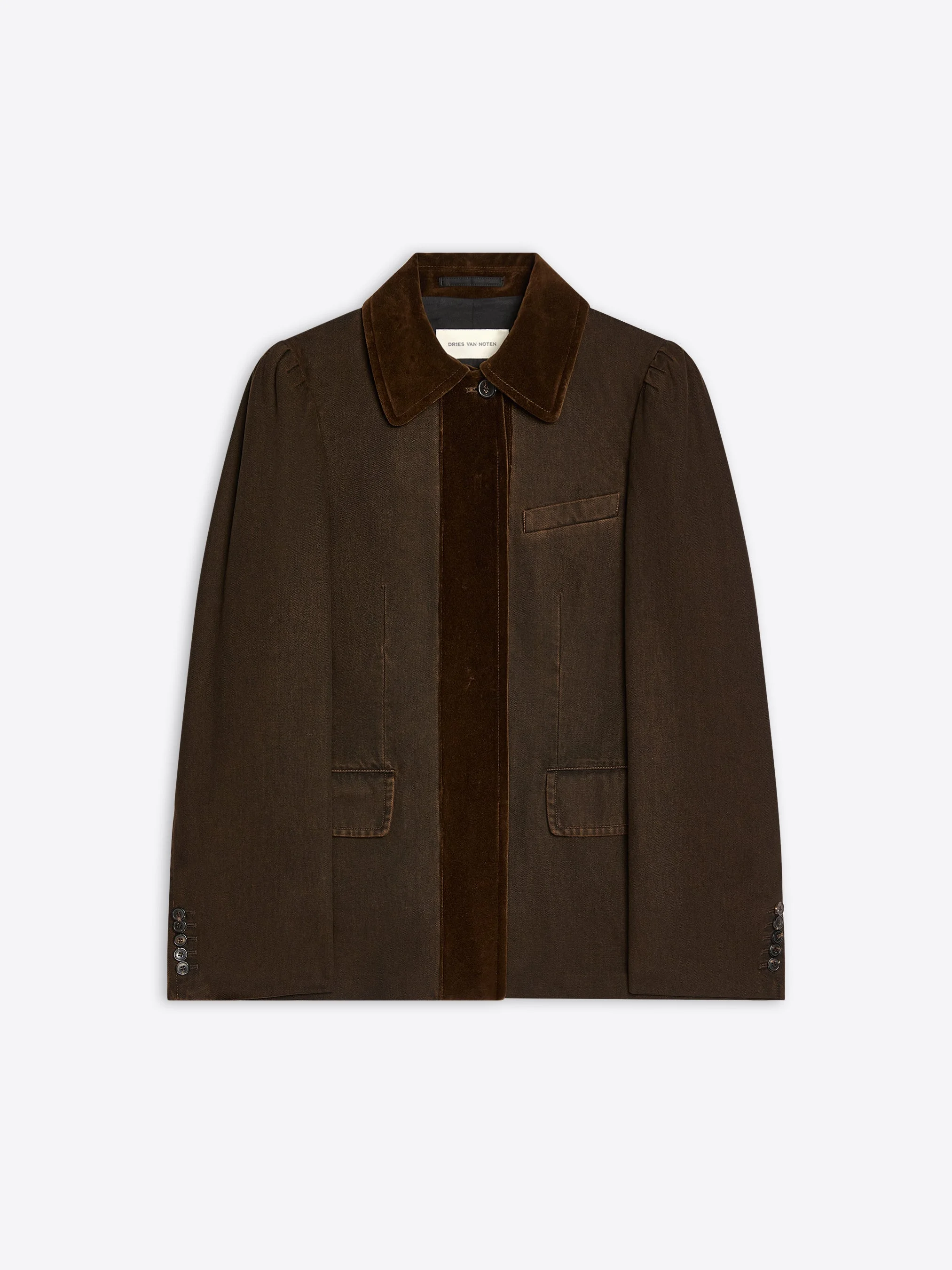 Boxy fit single-breasted blazer with darted puffed sleeves, in heavyweight dyed cotton denim. DETAILS - 100% Cotton. Lining: 100% Cotton. - Boxy fit. Darted sleeves. Single-breasted. Front flap pockets and welt pocket at chest. Hidden front button closure. - Ref: 252-010438-2397 SIZE AND FIT Model is 178 cm / 70 inches and wears size 36.