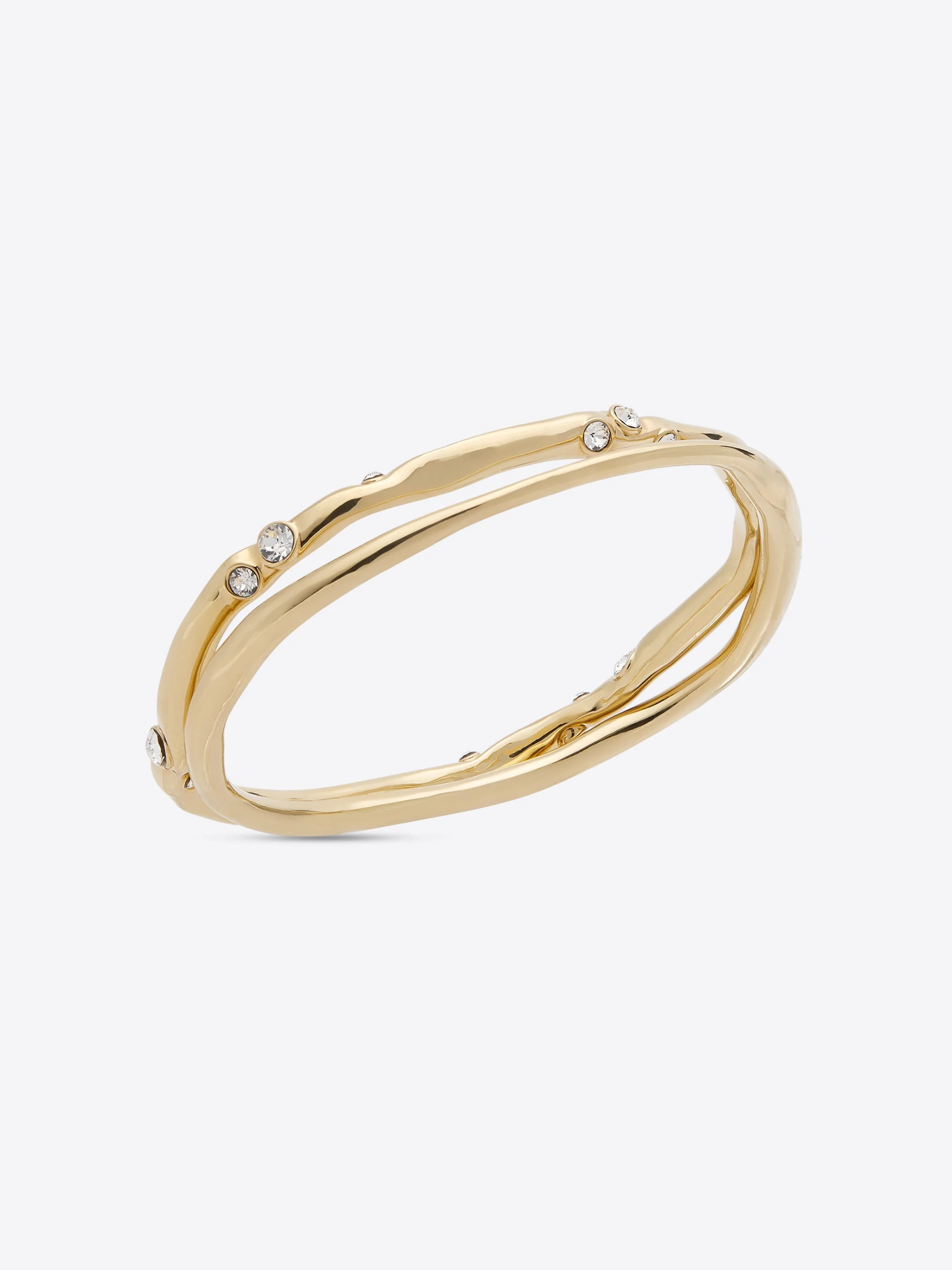 Handmade set of two cuff bracelets in brass, with strass embellishment. DETAILS - 80% Brass, 20% Strass. - Handmade. - Comes in set of two bracelets. - Ref: 252-018204-062 SIZE AND FIT Model wears size M.