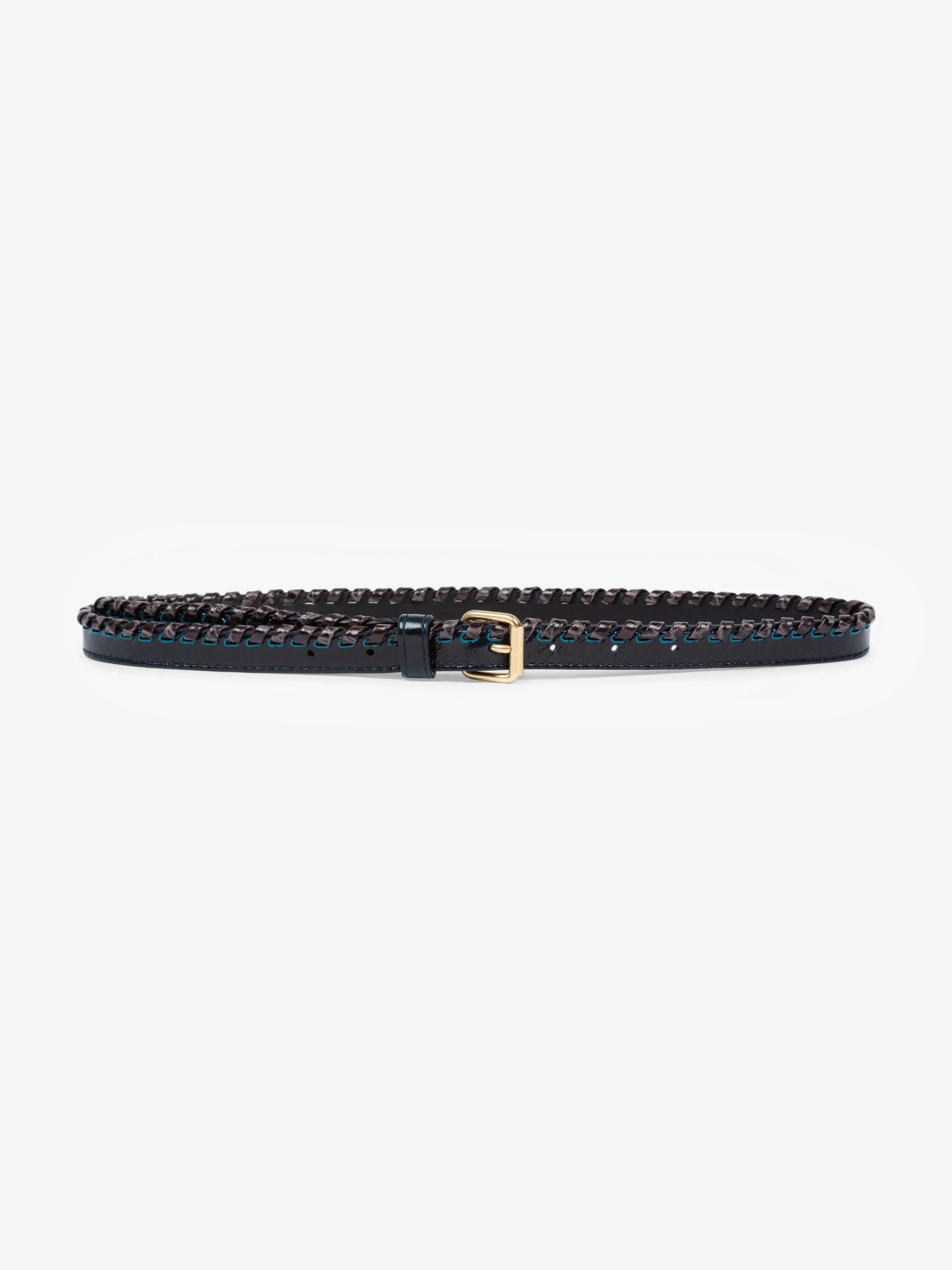 Classic thin belt in leather, with braided embellished contrast edges. DETAILS - 100% Leather. - Braided embellished contrast edges. - Ref: 252-011402-596