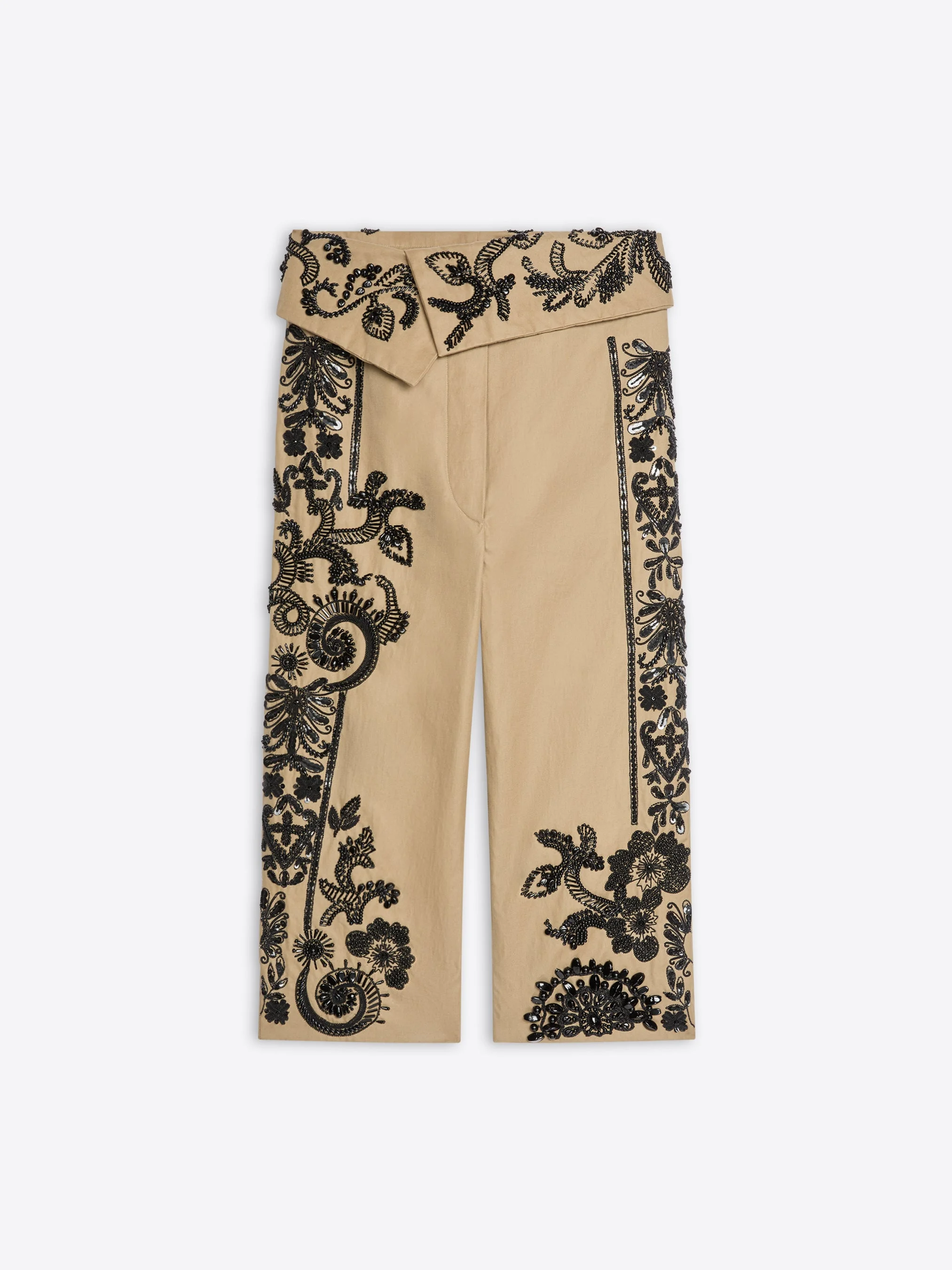 Fitted capri pants in twill microsand cotton, with matador embroidery. DETAILS - 100% Cotton. Lining: 100% Cotton - All-over capri embroidery. - Regular fit. Calf length. Side slit and back welt pockets. Front button and zip closure. - Ref: 261-010980-3103 SIZE AND FIT Model is 178 cm / 70 inches and wears size 36.