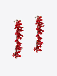 Handmade long earrings with embroidered beads, in glass and brass. DETAILS - 70% Glass, 30% Brass. - Handmade. Embroidered with red beading. - Pin fastening. - Ref: 251-018233-062