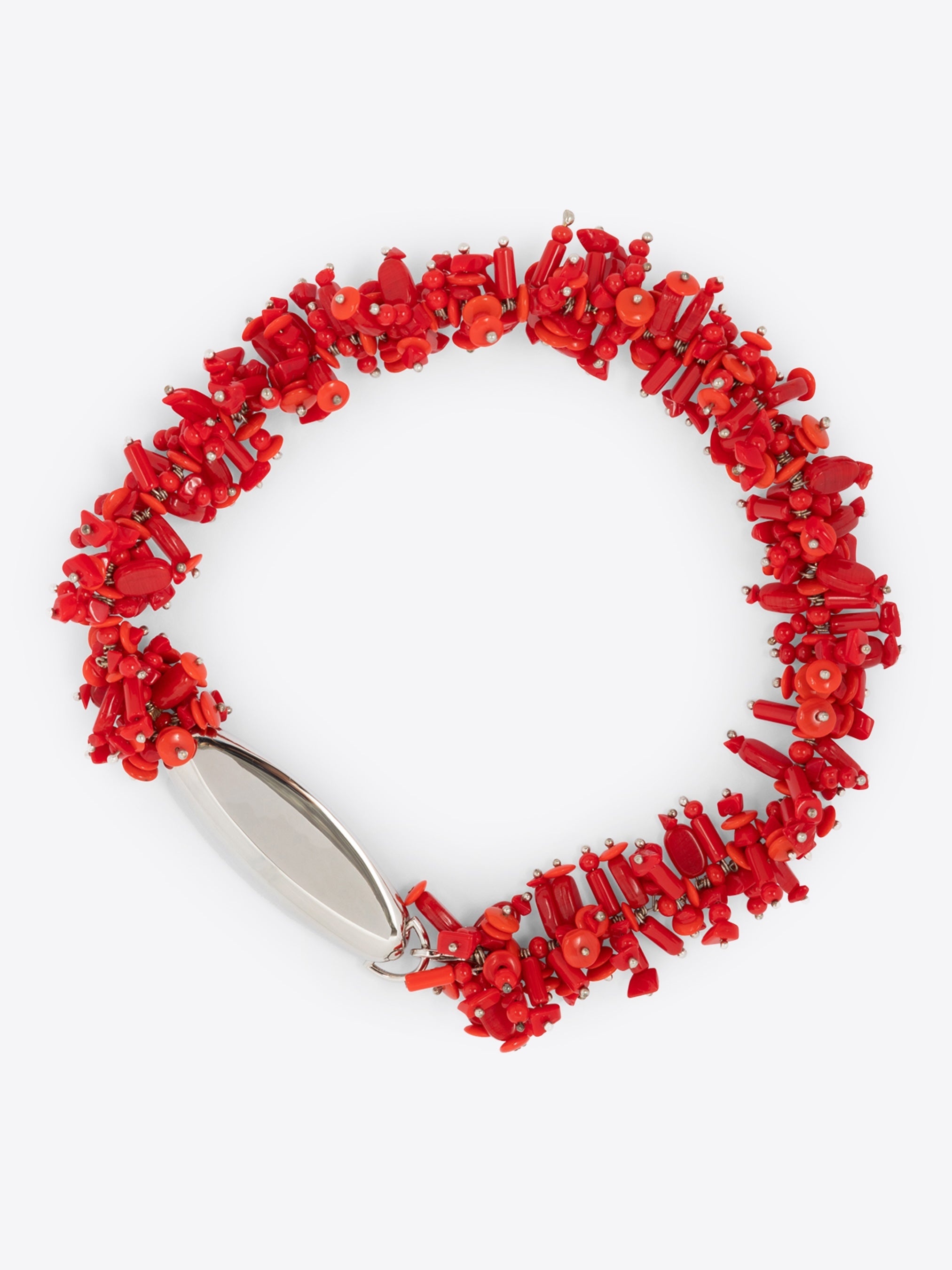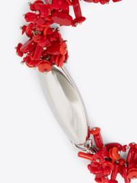 Handmade necklace with embroidered beads and electroformed shape element, in copper and brass. DETAILS - 70% Glass, 25% Copper, 5% Brass. - Handmade. Embroidered with red beading. - Toggle clasp closure. - Ref: 251-018229-067